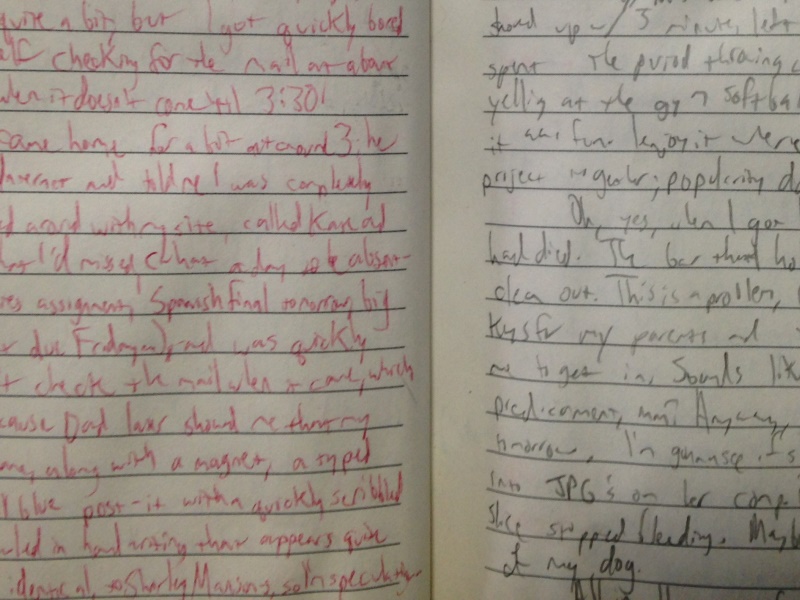 We’re all staying up all night. Everyone’s in the other bathroom. We wrote BUS NOTES! Everyone’s going home. It sucks. We were gonna do Ouija board and ask Kurt Cobain if Courtney Love killed him, but considering Noreen went to bed already I don’t think it’s gonna happen.