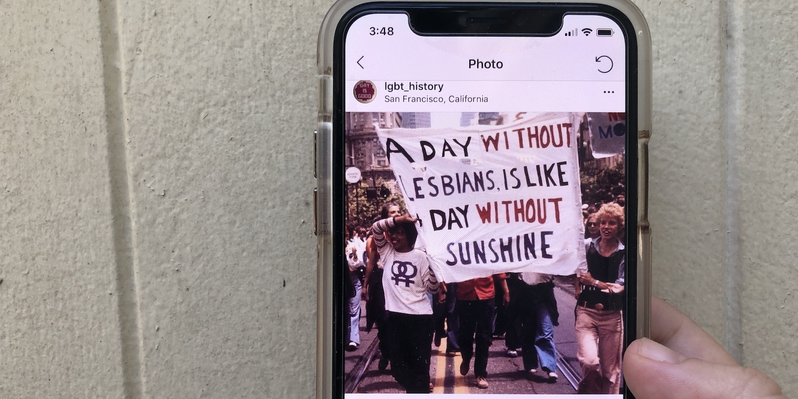 Lesbians, bisexuals, and queer folks of all identities love learning about our history. Are we a naturally nerdy bunch? Is dyke herstory just very engaging? Does structural oppression and erasure make a generation hungry for a narrative from our elders, a lifeline back to our roots? Has watching two women lock lips without giving a fuck about the male gaze just always been really fucking incredible?! In my professional lesbian opinion I’d say the answer to every single one of those questions is yes, yes, yes, yes! All that “yes” energy we just experienced? That’s exactly how I feel when I scroll through the feeds of the intrepid humans who are curating dyke, bi, and queer history on Instagram today in the year of our goddess Lesbian Jesus 20gayteen.