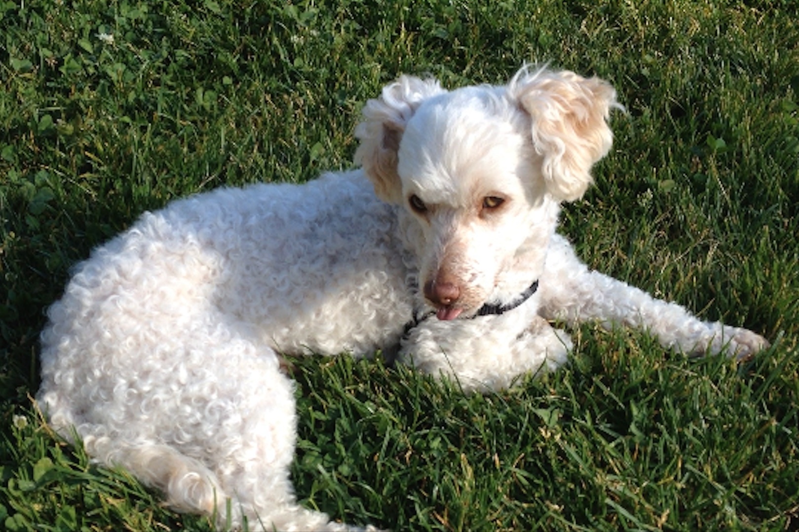 The new little dog, light where Marty is dark, calm where Marty is a whirling dervish of anxious energy, is unsure about the park where other dogs gather. I feel his paw on my foot. He places his head on my lap. He tucks his curled up body beside my leg. When I wake up in the middle of the night, he is curled into the curve of my stomach as I lay sleeping. In sleep, and in my arms, the new dog will kick out his hind legs the way I imagine a kangaroo might kick at a foe. When he runs, his ears flap in the wind and his long legs lope with the ease and dexterity of a rabbit. “Bunny rabbit,” I call him when he trots beside me.
