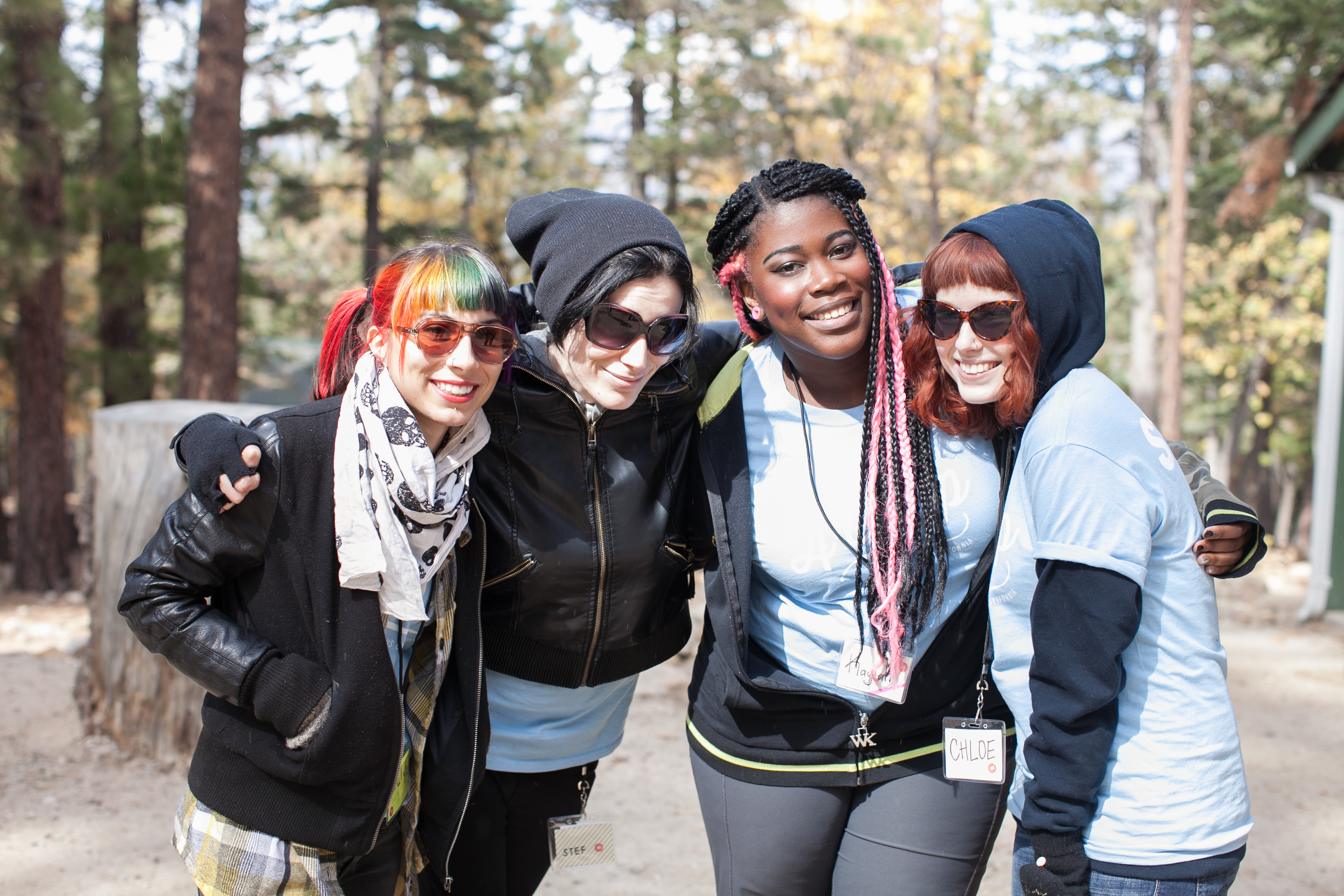 This fall’s camp was unforgettable and fucking awesome. Our amazing team was complemented by talented Special Guests including comedienne DeAnne Smith, new media superstar Hannah Hart, Me & My Bois collaborators Lex Kennedy and Emotions the P.O.E.T., rock star Somer Bingham and songstress and actress Haviland Stillwell. Our camp staff included Autostraddle.com team members, A-Camp Tumblr Inventress Emily Gigler and Autostraddle Calendar Girls Miss October 2014 Kai, Miss February 2014 Chloe and Miss June 2013 Dani.