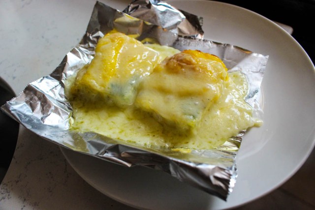 - Get your egg situation going – if you need to reheat baked egg soufflé, take it out and microwave it for like 25 seconds so it doesn’t stay cold in the center, and put any cheese you want on top. Stick it under the broiler in your oven or toaster oven. If you’re doing a bodega egg, crack your egg into a bowl, add a spoonful of water and salt and pepper and beat; heat a flat nonstick pan and pour in, throwing your slice of cheese in the center. Let the egg cook through and fold it over onto itself into a little square to fit the size of your bread, and flip over to let cook on the other side for 30 seconds.