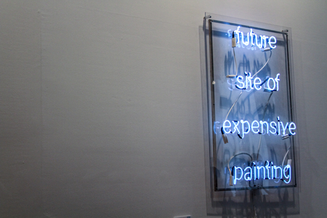 So much of the art bored me. Call it Stendhal Syndrome, call it shitty overpriced emperor’s new clothes, call it Najva is a raging judge-gy bitch – but here’s the good news: every once in awhile, across the hall from the corner of overdone & crappy, I’d see a piece I’d walk up to and for just a minute, everything stopped. You’d think I’d like more considering how much rhinestones and glitter was used… but I kinda want the work around me to, I dunno, mean something? I want art that’s funny, smart, interactive, worth a double take, or um – the giant Sugar & Gomorrah roller coaster. Really, there was a rollercoaster, with naked people making out inside instead of jumping out to scare you. Since you weren’t there, here’s some highlights: