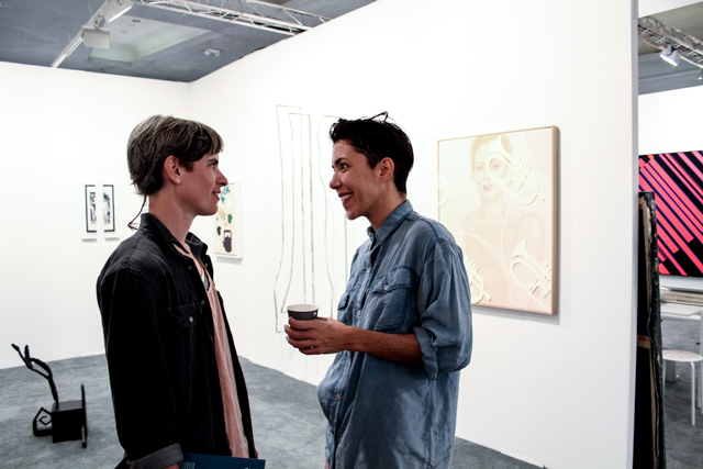 You know what’s ridiculous? If you ask the PR person at the fair about gay artists, they won’t have any answers for you. Ask about just about anything else, and they’ll give you a list of booths, but there’s still an art “don’t ask, don’t tell” policy. Or at least, that’s what it felt like. (Notable exception: San Franciscan based A&O PRÂ bad-ass Lainya from Untitled Art Fair who pointed me to epic-ly dark Participant Gallery). What was I to do? Thankfully, the informal queer network is useful for something beyond dating, and I was able to find rad queer artists & curators to feature. Oh, and sometimes glitter rainbow shoes can be a giveaway. There’s nothing like asking an artist if they’re a homo to make a moment instantly awkward.