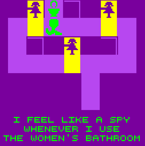 “I figured if I was frustrated, other trans* folk might find it comforting to know that they didn’t have to rage alone,” Anthropy says. “Frustration is a powerful tool because STRUGGLE is at the heart of any story worth telling, especially any struggle about being a marginalized member of society.”