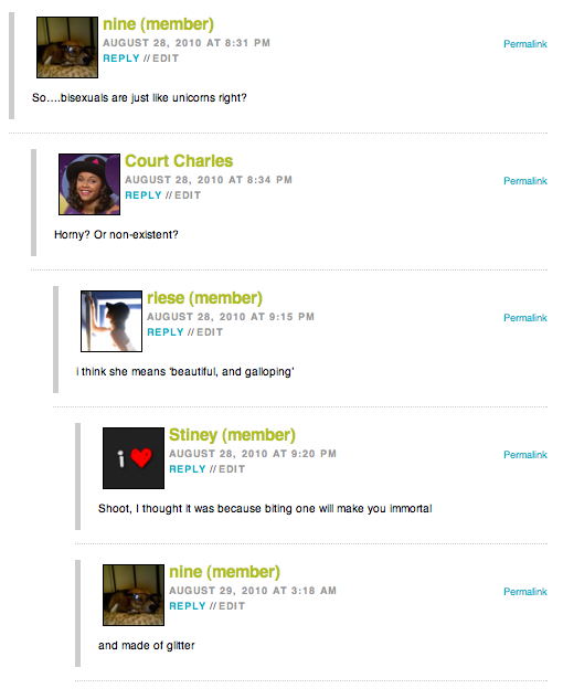 To start me off on my new job, y’all commented 250 times in the bisexual open thread, so I just want to thank you for that.