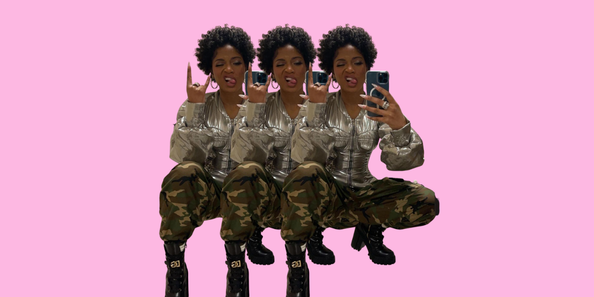 Yes, the outfit, yes, Megan kind of writ large, but also??? This wallpaper!!