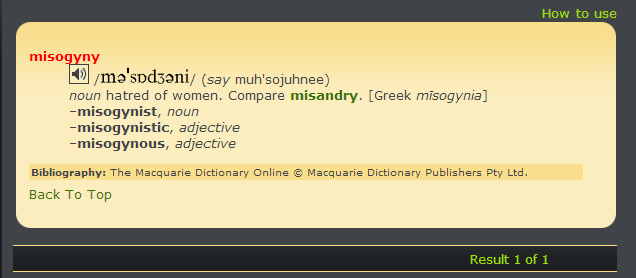 But of course, even there, in the face of logic and reasoning, there is still more criticism. Word purists have denounced the action saying words shouldn’t be redefined, although other dictionaries have already broadened their definitions. Members of the opposition attacked Butler for redefining the word, accusing her of ceding to Gillard’s whims as Macquarie modernized the term. For the criticizers, the word misogynist can only apply to “true” hatred of women, so anything less than that is watering it down.