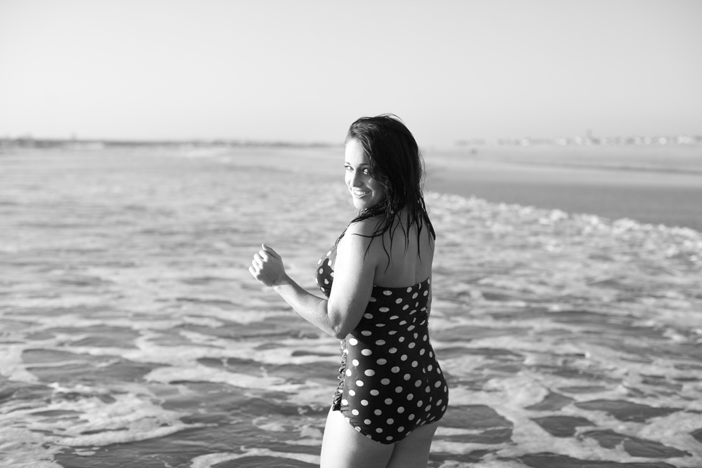 For the 2013 Autostraddle Calendar, we put on our bathing suits and hit the water! My goal this year was to do a black and white series that was playful, sexy, and all about the women. I sought to capture images that would reflect the models’ feelings of freedom and comfort in their own skin. We chose a simple expanse of sand and water where the horizon is somewhat indistinguishable, and it was the perfect setting for a very personal and introspective look at each of these extraordinary women.
