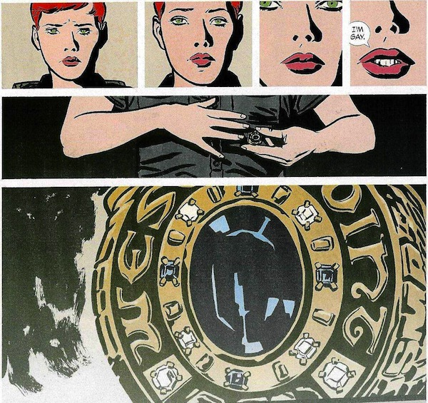Let’s start off with why this is important: The 2011 re-booted Batwoman comic series stars an out and proud lesbian, Kate Kane, as Batwoman, and while the idea of a lesbian Batwoman might seem like a spur-of-the-moment, dank fratboy party “guys, they’re lesbians let’s watch them make out” kind of ploy, it’s not — the series stems from a brief Batwoman arc that occurred in DC’s 2006 limited series 52, where DC’s staff decided that Batwoman would be gay (and Jewish) in an effort to diversify DC’s characters. The result: A Kate Kane whose identity is so tied up in being queer that her back story, iterated on the title page of every issue of the comic so far, notes that she was expelled from the United States Military Academy at West Point under Don’t Ask Don’t Tell. The moment was illustrated with an unexpected amount of sincerity and thoughtfulness on the issue of LGBT rights.