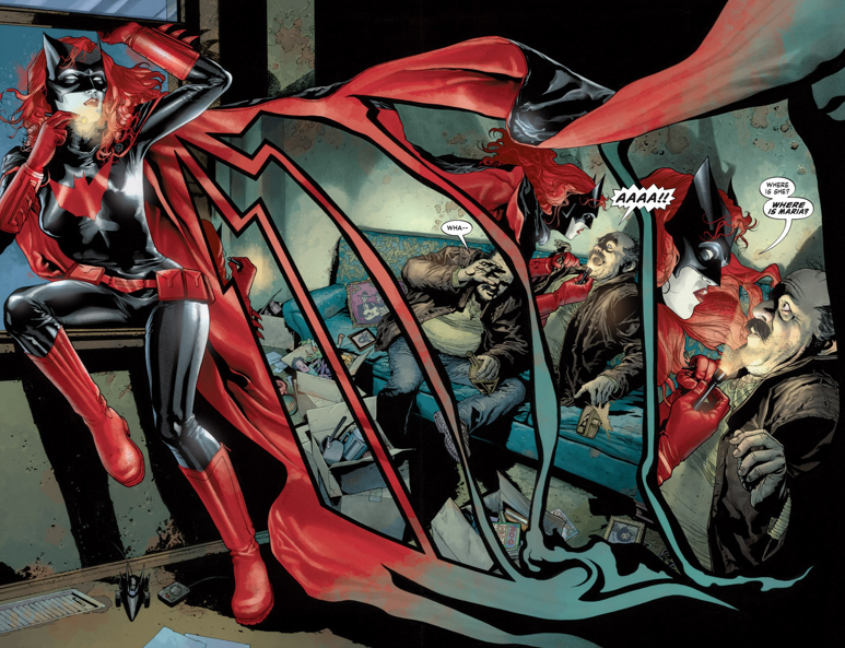 I was pleased to see these depictions balanced out by the array of Latino characters in Batwoman #4, though — while most of the Latino individuals do appear briefly and often without a lot of personal plot focus, a central, seemingly evil spectral female character, La Llorona (“The Weeping Woman”) of Mexican legend, is Latina as well. Taken separately, the victimized Latino families and the spectral Latina villain become imbalanced racial tropes, but when put together, you can tell that Williams and Blackman are trying to flesh out a racially diverse Gotham that is not very often seen in the DC universe. The balance between La Llorona and the abducted Latino children is a little tenuous, but the effort is definitely being made not only to familiarize readers with the Latino residents of Gotham but with the cultural legends that these minority residents might be aware of as well.