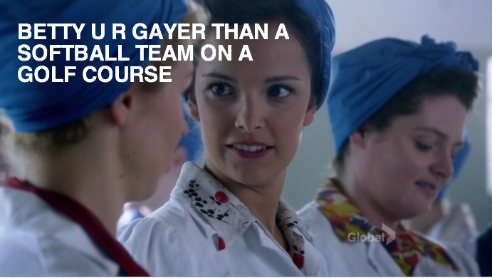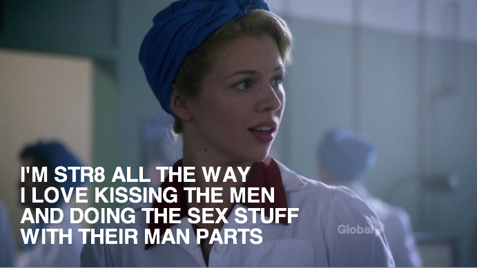 If you’ve never seen Bomb Girls, please run, don’t walk, to your nearest torrent and get yourself the first season as soon as is humanly possible. If your television interests are as lesbian-thirsty as mine are, then consider this the tower of Gatorade in the middle of the Sahara.