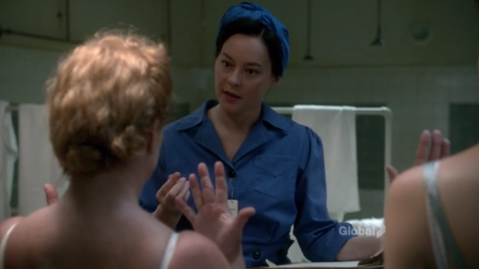 Vera’s looking all fine, and her scars have healed at a rate that makes me wonder if we are supposed to think a lot of time has passed or that medical technology was a whole lot better in the forties than we have been led to believe. I’m gonna go with the latter, since I believe pretty much anything I see on TV! Remember when the hooks that hook into the bomb things accidentally hooked into her head? You got this, Vera!