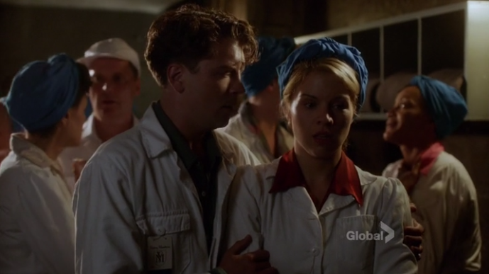In an irony that I hope was entirely intentional on casting’s part, the second most dykey person at the factory asks Betty if she and Ivan are a thing because of how arm-squeezy they were getting down in the tunnels. Gladys says Betty is “not that kind of girl” aka she is too gay to function, but Betty says she calls dibs on Ivan, whatever. She does this through a lot of dykey swaggering and slamming her spoon down to stake her claim. It’s so adorable how hard she’s trying and so adorable how dykey she remains that my heart just about bursts. Gladys believes none of this bullshit but quietly supports Betty no matter what because she just read a zine on how to be a good ally.