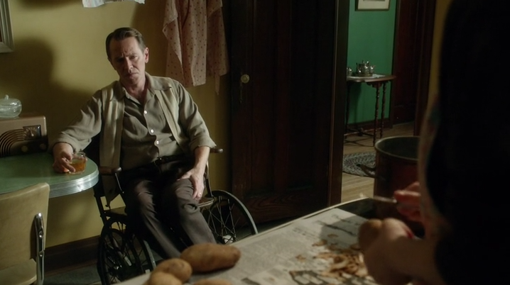 Vera’s looking all fine, and her scars have healed at a rate that makes me wonder if we are supposed to think a lot of time has passed or that medical technology was a whole lot better in the forties than we have been led to believe. I’m gonna go with the latter, since I believe pretty much anything I see on TV! Remember when the hooks that hook into the bomb things accidentally hooked into her head? You got this, Vera!