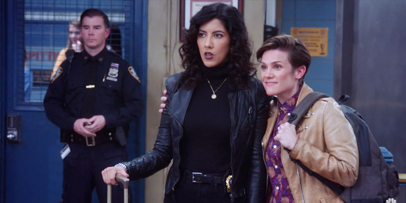 Cameron Esposito was back on Brooklyn Nine-Nine this week as Jocelyn — no Jake’s not saying her name over and over and over again because he forgot it one time, okay — decides she’s gotta break up with Rosa because Rosa is over-committed to her job. It’s an episode that takes place in real-time, like 24, which means there are a lot of elevator rides to showcase the passing of time. The best one is after Jocelyn explains about this breakup, and Rosa reveals her plan to Jake: “I‘m gonna beg her to stay, change whatever I need to change, then once our relationship’s stronger than ever, I’m gonna dump her as so quick. It’s gonna be brutal.” They hop in the elevator and Jake says that plan is Villanelle levels of psychotic and also chides her for still not watching Killing Eve.