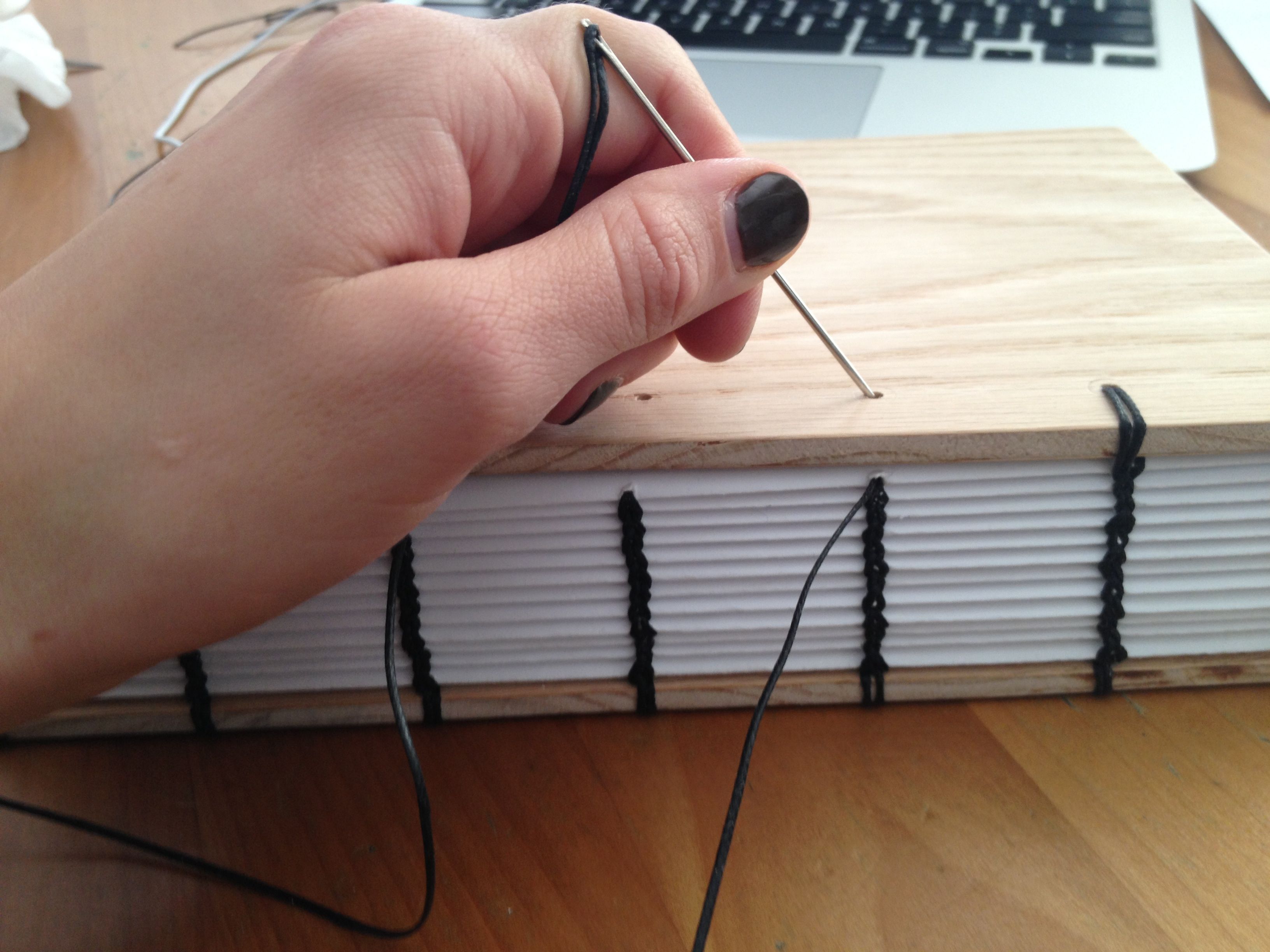 Waxed thread: Waxed thread keeps your string from accidentally knotting which keeps your insanity level low. It also helps keep the thread from shredding through the pages while you’re sewing. Wax helps the knots you mean to make stay knotted and holds up better to wear over time.