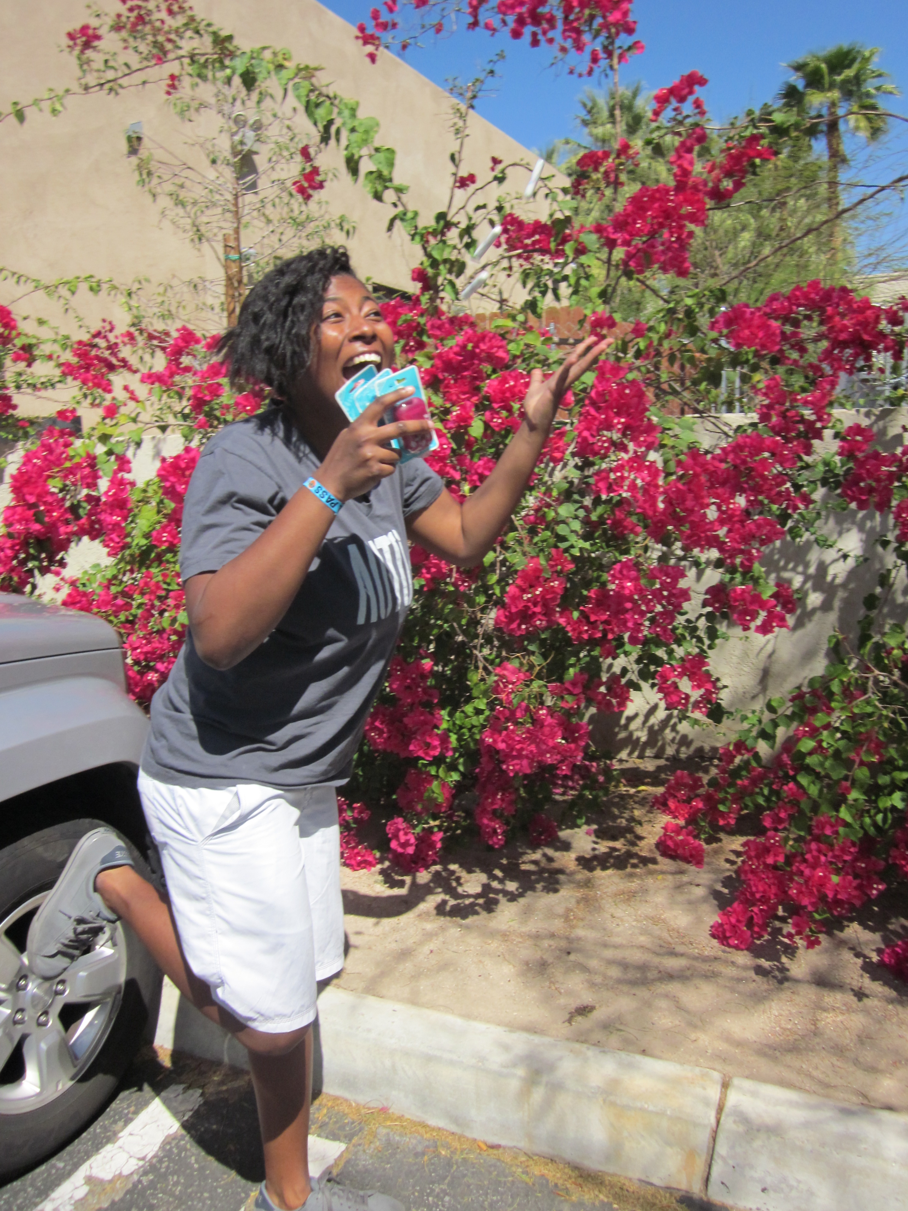 Friday, after a breakfast of champions (See: McDonald’s), I hit the road with mah friendos, Alice and Chloe. After jamming out and voicing several fears in which the worst case scenario is not actually that bad, we arrived in Palm Springs. We grabbed our wristbands and made our way back to the car to make use of all the free Red Bull we’d snatched up. You know what else they were giving out like hotcakes? ob tampons! Because ob is investing in the lesbian community, y’all.