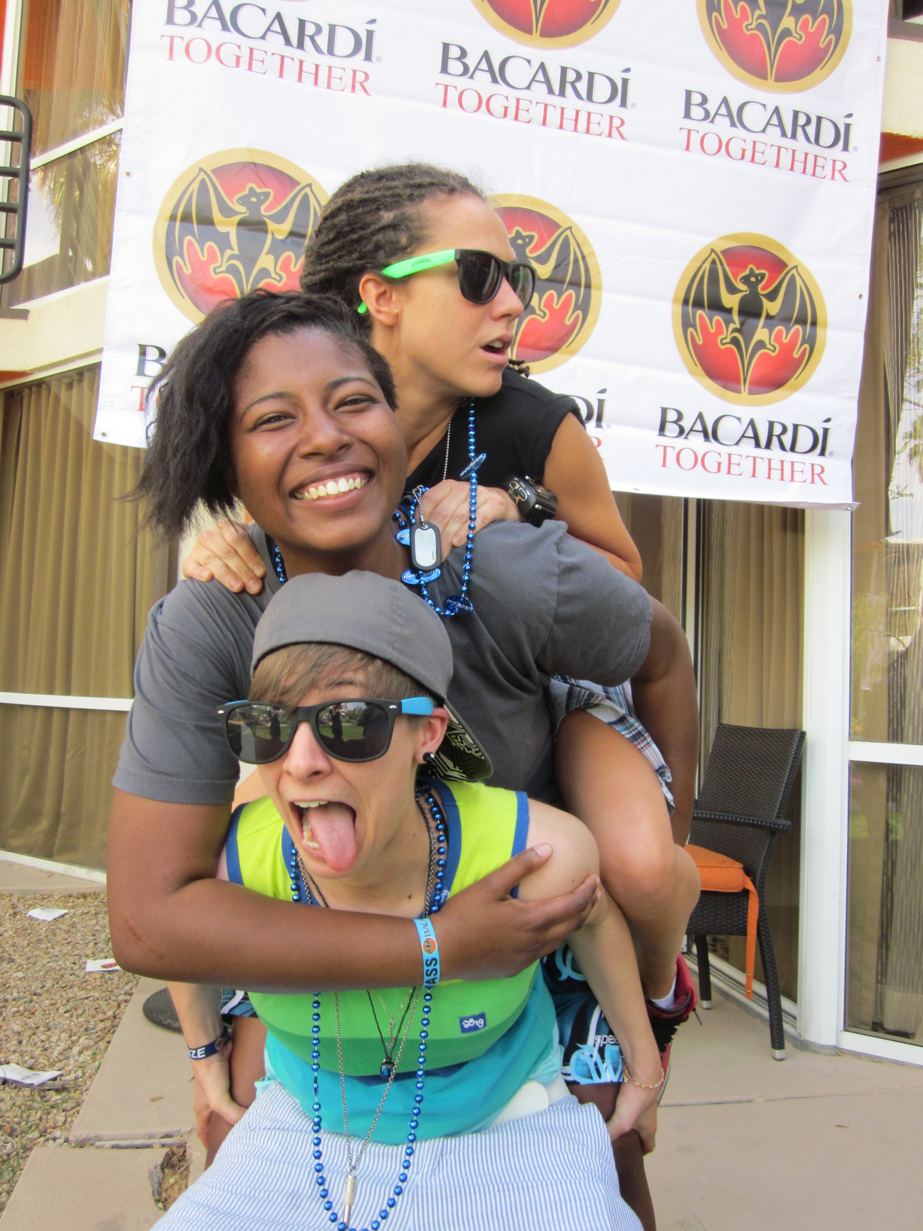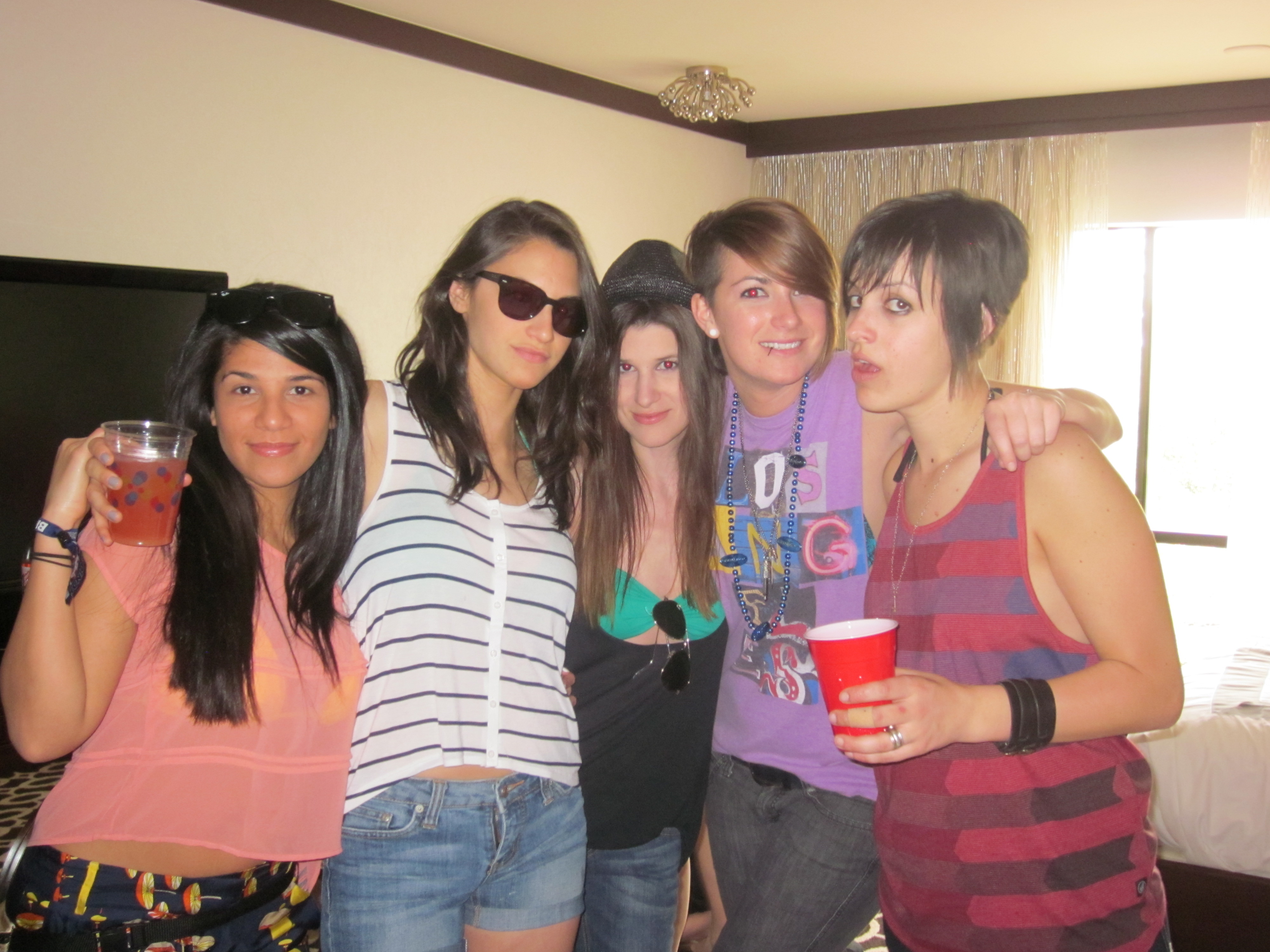 Once again the pool party ended and people begin to transition into the portion of the night where those without death wishes eat food and everyone starts getting ready for the night party. Sometime during this phase, I took my sunglasses off to pull a girl over a balcony railing. Losing my sunglasses saddened me almost as much as the fact that I had to pull a girl over a balcony railing. A wonderful femme friend of mine had even traded her blue pair of sunglasses for my pink ones. Now they were gone and all I had to comfort me was another BMOS which actually turned into a whole night of sobriety but onward and awkward as I always say.