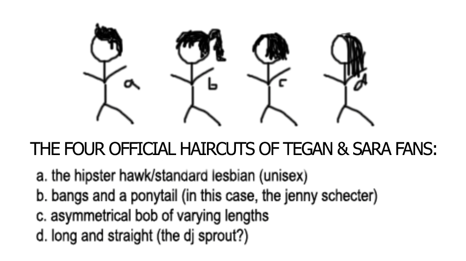 At the time I was faithfully documenting the exploits of my super-hot life on my personal blog Autowin, which had a moderately-sized but intensely committed readership, and of course a Tegan & Sara concert required a complete recap. So, what follows is our account of the concert as we wrote it in 2007, lightly edited and rearranged for maximum reading enjoyment, along with a few additions to actually communicate information about the show itself and not just our own personal lives. I have also included drawings Stef did for her own recap of the concert on her own very incredible blog, which she has since deleted from the internet because she’s unable to recognize her own genius. Luckily, she still had the pictures on her hard-drive.