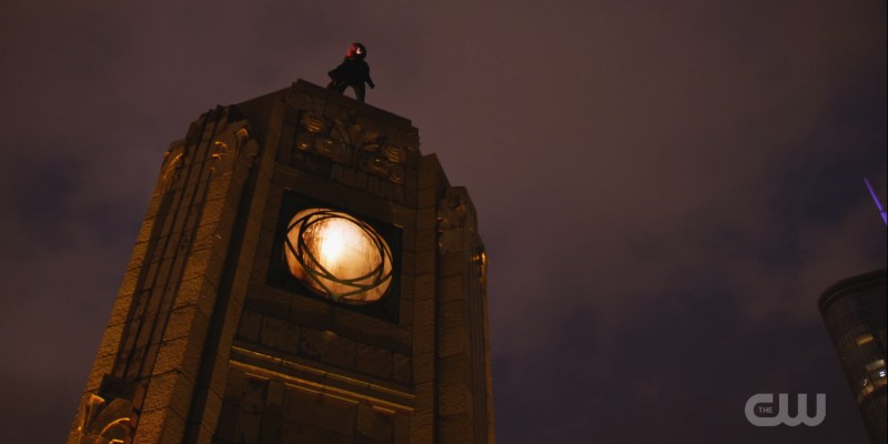 Anyway, that vibe was a VERY bad vibe, and it gave Cisco a bloody nose. Oliver-Flash speed-draws what he saw, but Kara doesn’t recognize Tome Guy or John Deegan. Oliver doesn’t either, but he does recognize one building in the back, the name “Wayne” emblazoned across it, so he knows where they need to go: Gotham City.