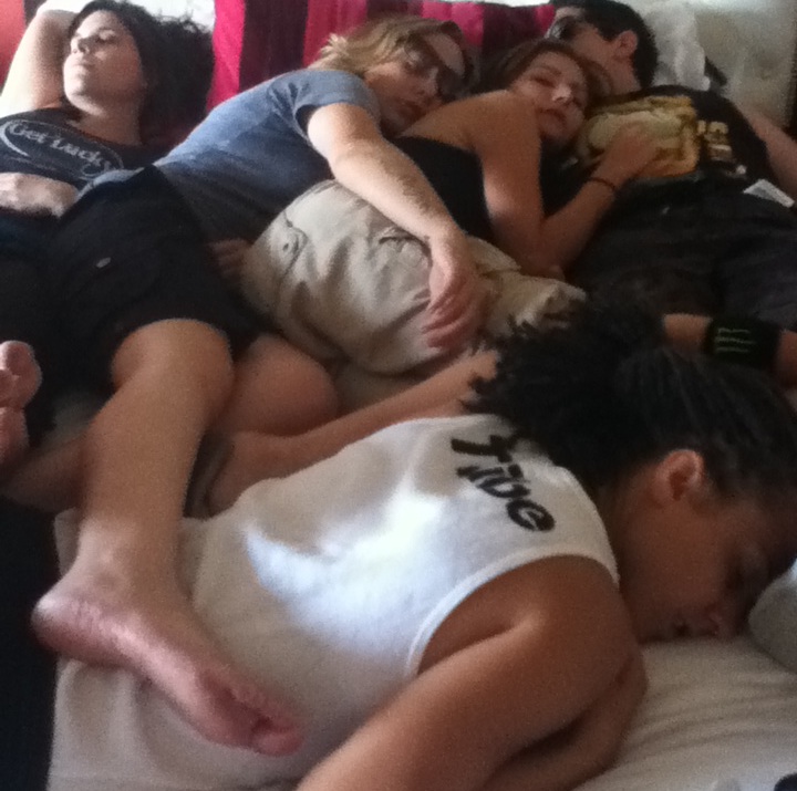 8:58 AM Sunday: Hi everyone this is Rachel! Last night we went to Gurlesque, where the Truck Stop Girls had an intense and exciting dance-off with the Gurlesque Dancers. We felt it was sad that two groups of strong, empowered women had to be set against one another instead of working together to end the patriarchy, but they were very good dancers who did many sexy things with chairs and we were very impressed also. Estelle is a talented singer, and it was inspired of her to change the lyrics of “American Boy” to “American Girl” because at Dinah Shore we are mostly concerned with those.