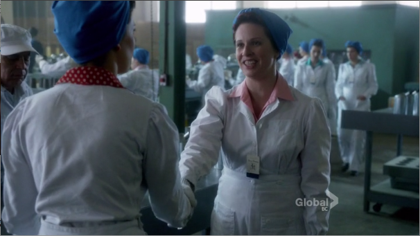 Since Bob got his pay day and needed shade and a vacay, Lorna is home alone and into Sheila’s suggestion of community service at the hospital. She thinks she is gonna enlist the factory girls because they are going to need way more community service on their resumes if they’re ever gonna get into the right schools. She tells the girls that dudes are dying for their right to party and they should feel bad about it. I’ve decided Lorna is the factory’s resident Catholic Mother, as she seems to employ a lot of intense guilt in both motivation and discipline.