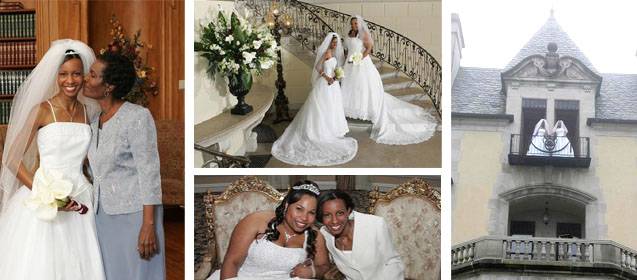 When there’s money to be made, laws change quickly, yes? So we say hurrah! The premier issue features articles like the Top 10 Wedding Style Trends of 2010 from Kleinfeld Bridal’s Fashion Director Randy Fenoli of TLC’s “Say Yes to the Dress,” a state-by-state guide to same-sex marriage laws, cute proposal stories sent in by readers, “real weddings” like supercuties Aly & Elroi (as photographed by Labour of Love) and Cheryl & Monica (below) and how to buy the right suit for your bod, “masculine or feminine.”
