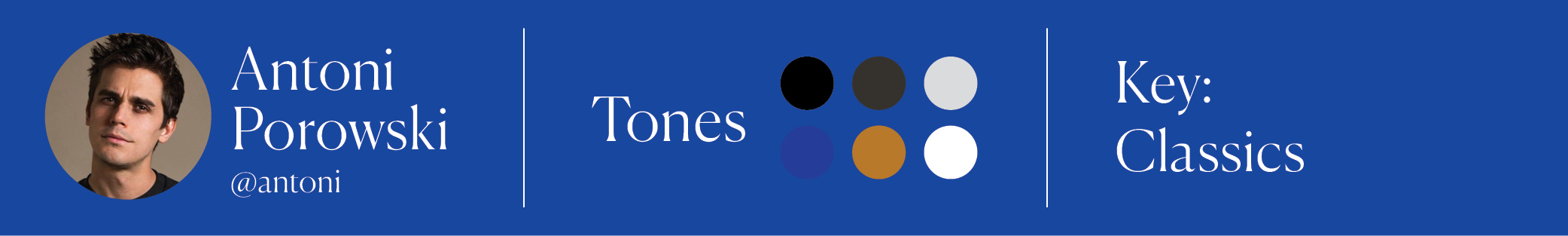 So something that worked out great with your two style icons is that Antoni actually has two distinct looks that can (sometimes) overlap in a nice way, and most definitely can cover your needs (especially for work). I’m going to start with this first look, which I think is the most classic casual one.