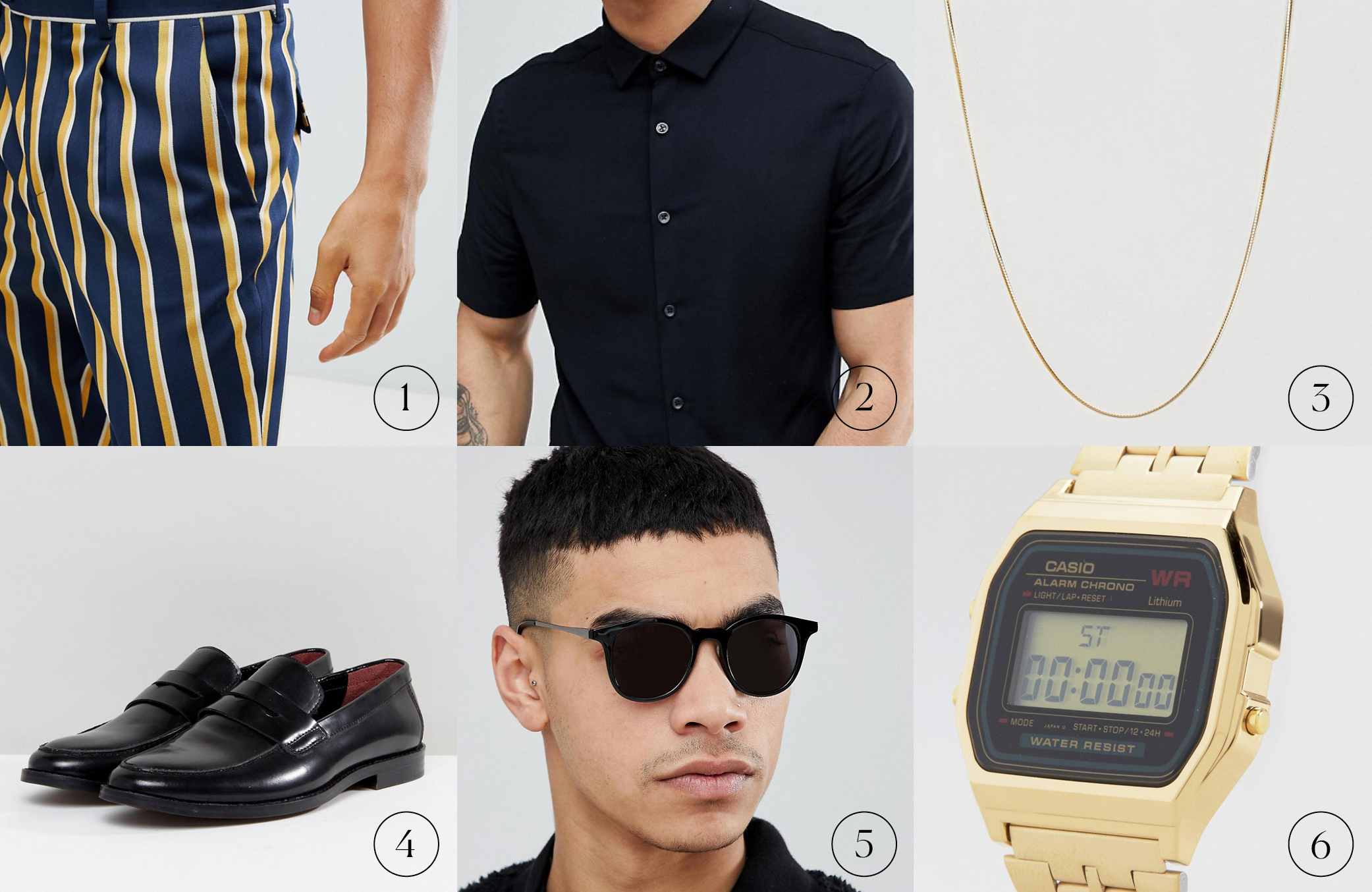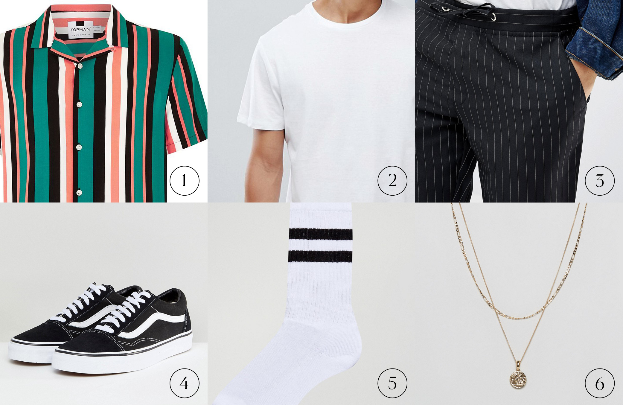 The centerpiece of this fit is the trouser. I picked these stripe ones from ASOS because the fabric pattern is a statement itself, and this allows for incredible flexibility everywhere else. You can roll the ankles or not, you can wear this kind of pant with shirts or t-shirts, with sneakers or formal shoes.