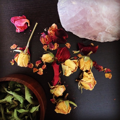 I’m not talking about cleaning your space, but clearing your space. Clearing your space is like giving the energy in the room a bath. Smudging/smoke cleansing* is the most common way most people have heard of, and White Sage is the ubiquitous smudge, but I actually like using rosemary. It’s more culturally appropriate to my European heritage, and it grows plentifully in my garden. If you hate smoke, you can clear the space by making a spray out of essential oils and water, or sprinkle salt water around the edges of a room.