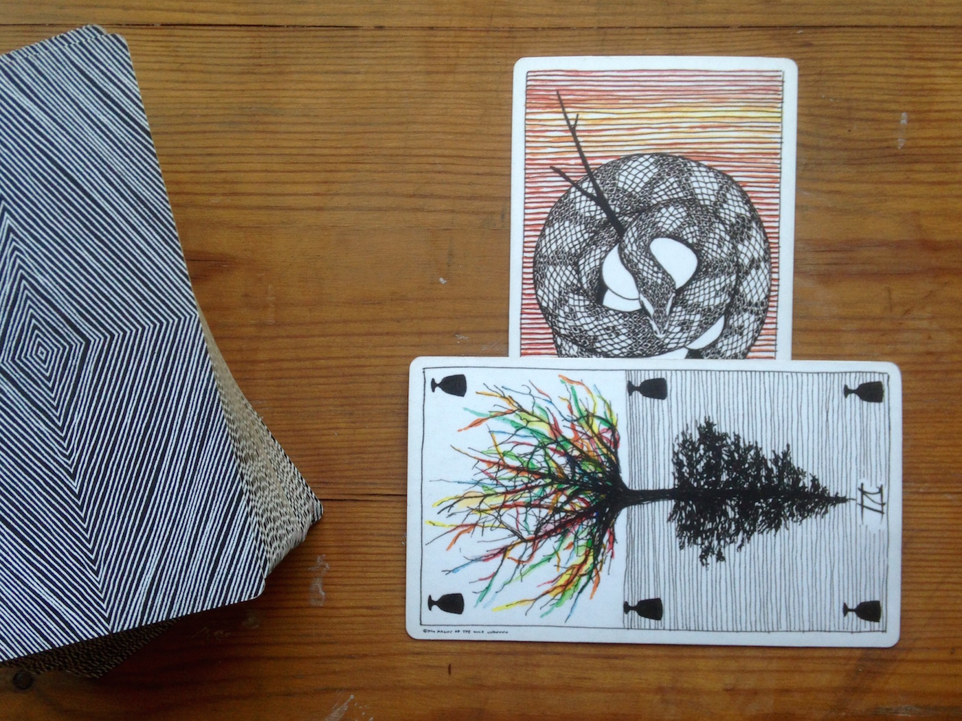 I got the Mother (aka Queen) of Wands, crossed by the Six of Cups. So my situation was represented by a confident, high-achieving, self-possessed creative person — a card I happen to really respect and love, and a card I often want to channel. My crossing card, the ‘challenge,’ was represented by the Six of Cups. Looking at those deep, colourful roots, it seemed to suggest a need to go back to basics. What did the cards tell me together? That I had put a lot of pressure on myself today. I looked at my to-do list: a long list of creative, exciting tasks that I couldn’t get done in a whole week, let alone a day. Perhaps I was expecting too much of myself today. The Six of Cups suggests simplicity. Finding joy in the little things. A more childlike view of creativity. I don’t have to be the Queen of Wands every day.