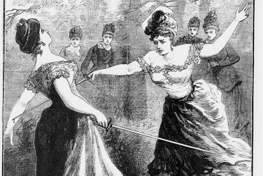 Whether they were fighting over who got to enter the room first at a party or the superiority of French over American doctors, most women stayed fully clothed while duelling even if that clothing consisted of full drag or an Amazon costume. Not so the Princess Pauline Metternich and the Countess Kielmannsegg, who, in 1897, fought a duel with rapiers over the floral arrangements at a music recital.