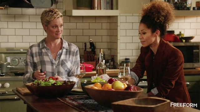 Back home, Stef and Lena have a glass of wine and talk about the fact that maybe it’s time for Lena to be principal. Oh Stef, she doesn’t want to win the job like this so you’re going to pack those fantasies away for another day, kid. Callie bops in wanting to know who Diamond is. Stef only says that the girl is a good kid who could use someone to look out for her (kind of like season one Callie. Well, all seasons Callie).