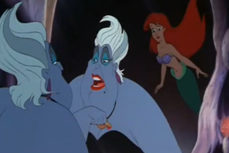 “At first glance, Ursula seems a woman; on closer inspection, however, the Sea Witch resembles a flamboyant, Divine-ly inspired drag queen. Her octopus-like lower half further renders her gender ambiguous: the first view of her tentacles emerging from the darkness is played up for shock value…”