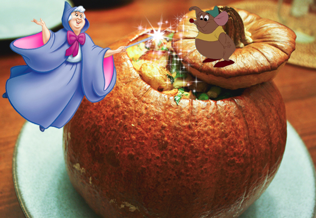 There are many ways to eat this Cinderella Pumpkin stew. You and friends could gather around the pumpkin like it is a cauldron and you are witches, or for a more “polite society” approach, just spoon the stew and pieces of pumpkin into bowls or onto plates. Easy! Enjoy! Remember to finish eating before the clock strikes midnight, or else you’ll go back to being pumpkin stew-less [cue scary music].