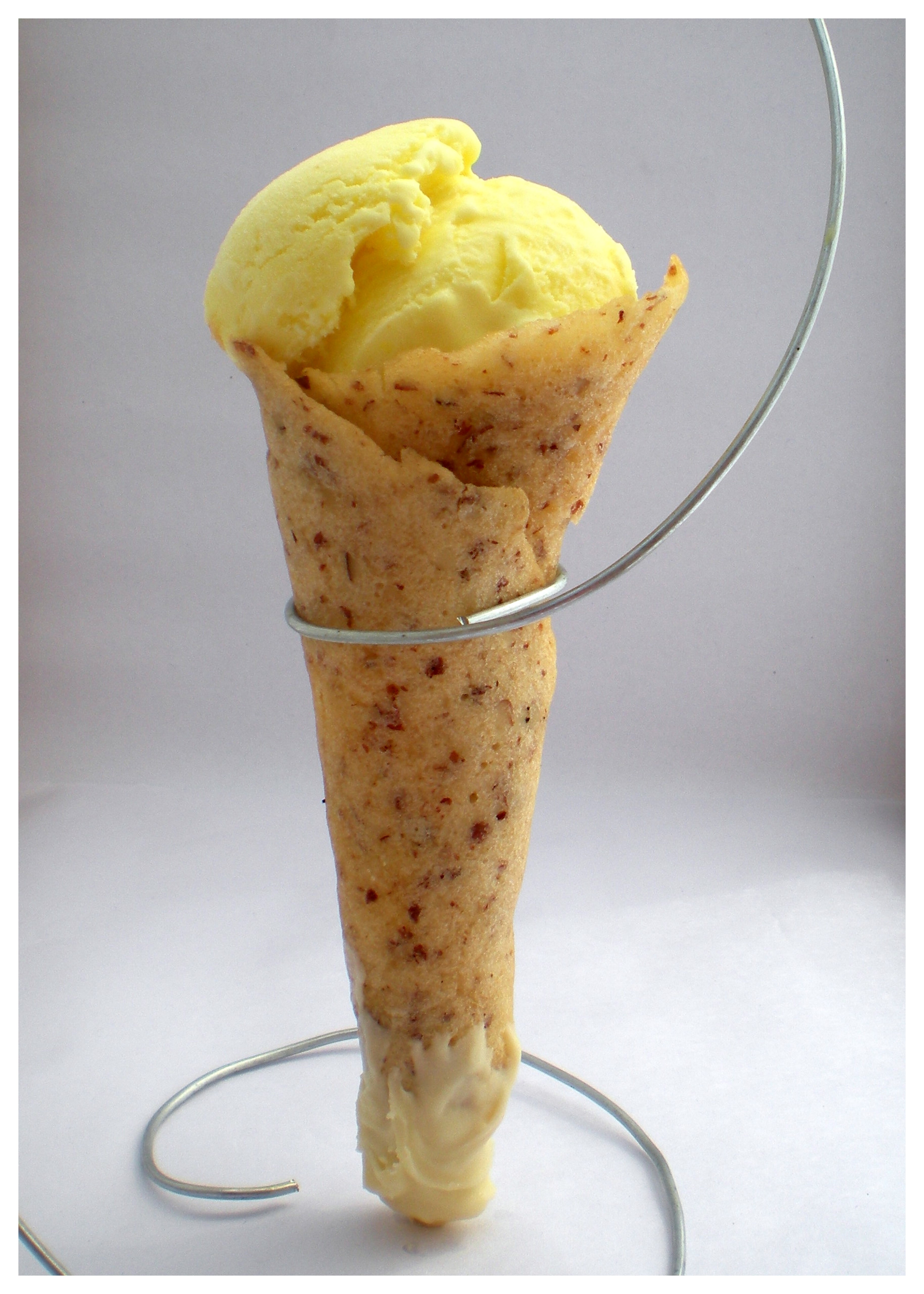 I haven’t had ice cream in ages but I can’t think of a better way to reintroduce it to my body. This ice cream was insanely rich, pretty, and tastes exactly how it sounds–buttermint. As for the cones, well, I’m usually more of a cup girl ice-cream-wise but I thought I’d challenge myself. I usually go for recipes that are relatively easy, but this is one of the most difficult things I’ve ever made. It was hard to strike a balance between too crunchy and too soggy and even when I got one that worked, they were really delicate. Out of a recipe that was supposed to make 8-10, I got 4 good cones. But that doesn’t mean you shouldn’t try! Even if you fail you end up with delicious cookies to eat with your ice cream.