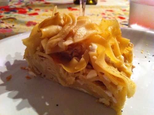 7. Gently fold the noodles in to the egg mixture. I’m not sure what “folding noodles in” means, but this is what my mom always says to do.