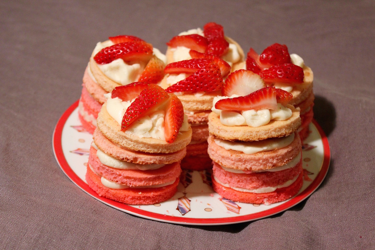 5.) Use a circular cookie cutter to stamp out circles from your cakes. I’ve found the sweet spot to be 58-78mm circles. Smaller than that, the tower is really unstable; larger than that, and the cake looks stumpy. I used 68mm for most of the cakes pictured here.
