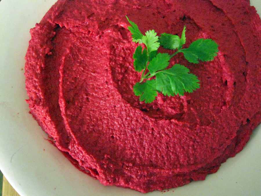 Okay, so this is a hummus. It’s just a hummus for people who like beets. It is at once mind-blowing and beautifully simple. Hummus + beets. Like any hummus, it contains chickpeas, tahini, lemon juice and garlic. Also, though: beets.