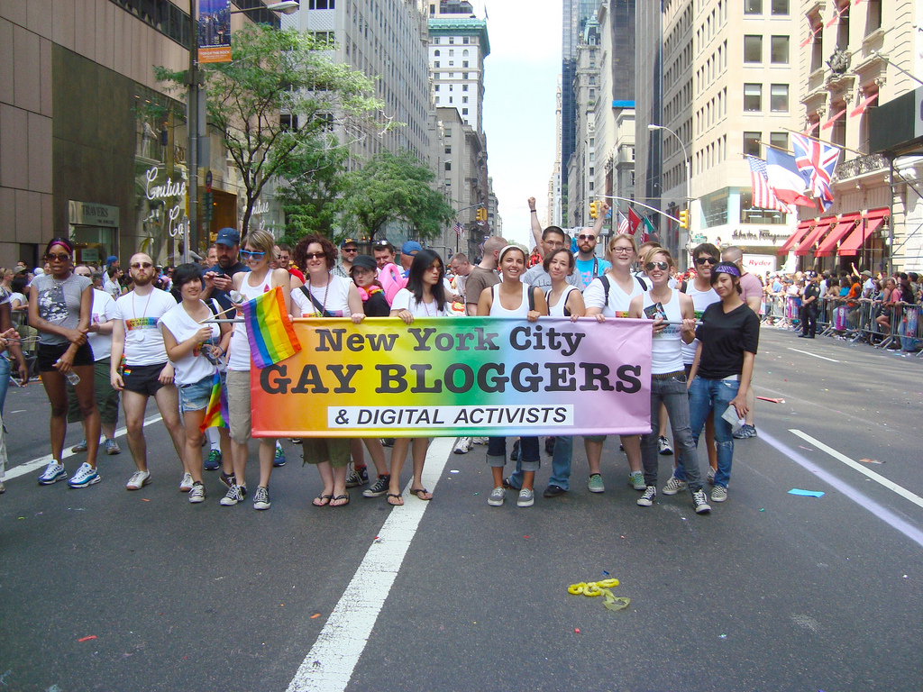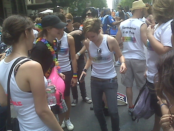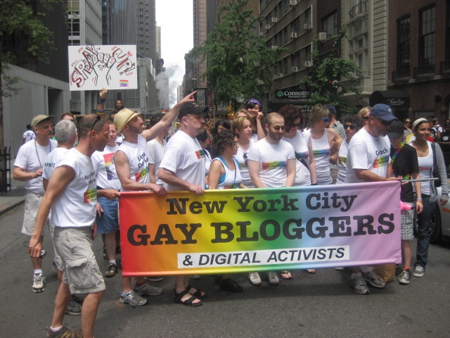 Along with a hearty crew of gay bloggers spearheaded by Father Tony, Autostraddle.com marched with the Gay Bloggers & Digital Activists group in the 2009 New York City Pride Parade, swiftly balancing the gender divide with (almost) its entire intern army. Other lady-marchers were Grace of Grace the Spot and Brenda of Curly McDimple!