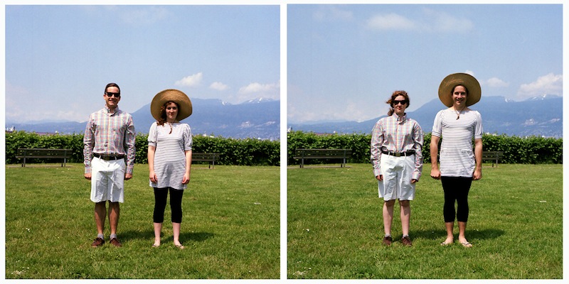 So there’s this girl, Hana, who really gets how much fun it is to play dress up with your friends. Hana lives in Canada takes pictures of people and the clothes they wear. But Hana’s photos aren’t part of fashion spreads; she has her models swap outfits with each other so that she can take another picture to display alongside the first. After the switch, her subjects wear the same expressions and assume the same poses as their “before” counterparts. Her project, which she’s called Switcheroo, is as cute as its name and has a thing or two to say about gender, bodies, and fashion.