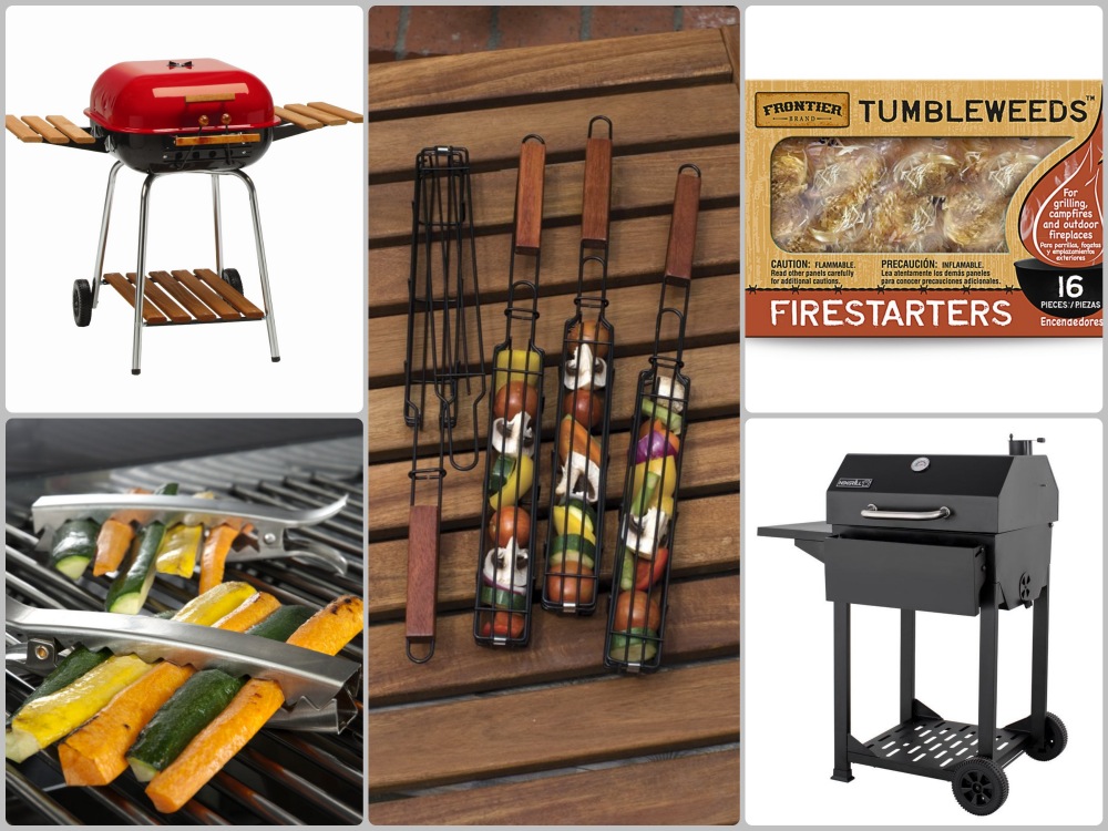 Want bells and whistles? TOO BAD. Just kidding, here are some inexpensive grilling clips that are excellent for veggies, nifty kabob baskets so you don’t lose any of your preciously marinaded morsels, and a chimney starter that turns crappy charcoal into a column of perfectly smoky obedience. You can also give the process a boost with eco-friendly products like Frontier Tumbleweeds Firestarters.