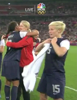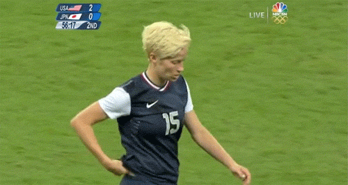 Remember that time the USWNT won the 2012 Olympics? Remember how fun and exciting that was? Remember how your neighbors probably thought something horrible was happening in your apartment because of all the screaming? Or was that just me? Best thing about the Olympics: Megan Rapinoe gifs. There are a plethora of Pinoe gifs, and while Googling them you might fall into the black hole of watching every interview she’s ever given in the history of ever and mindlessly looking through pages and pages of her face, so we’ve saved you some time and rounded up fifteen of our favorites. We even made you some of our own, because we love you and we want you to be happy. So. Here are some I’ve found that are very relevant to our interests: