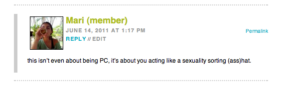 A comment award and a gay nod, all within 24 hours. Hotdamn, this is a good weekend.