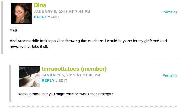 This week we also gave you the best/worst of everything in 2010 which includes pictures of everyone as cats, so. Also here are the top ten sweatpants you should be wearing (hint: university sweatpants are the best! I’m wearing some right now). In fact, I’d say 85% of my life is spent wearing sweatpants.