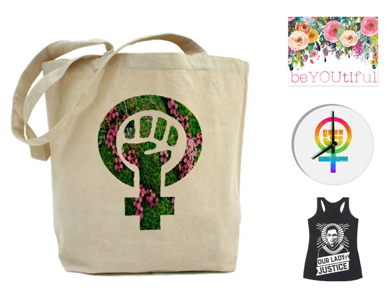 Feminist Earth Symbol Tote | FEMINIST Crop Top | Smash the Patriarchy Pendant | Our Lady of Justice RBG Tank Top | Notorious HRC Tee-Shirt | Whatever We Wear Racerback Tank