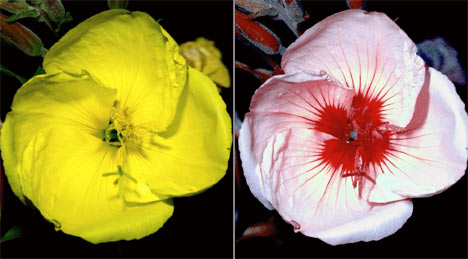 10. Remember how I said they’re super sensitive? Bees can see color, but not the same way that we do. Their eyes can see a wider portion of the spectrum than ours can and so ultraviolet patterns on flowers that are invisible to us act as landing pads to guide bees to their centers.