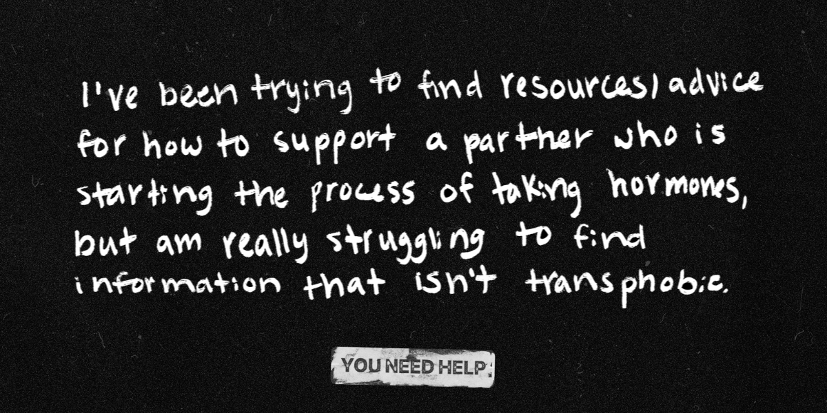 I’ve been trying to find resources/advice for how to support a partner who is starting the process of taking hormones, but am really struggling to find information that isn’t transphobic. I’m also trans so coming across transphobic content is especially ugh for my brain, too.