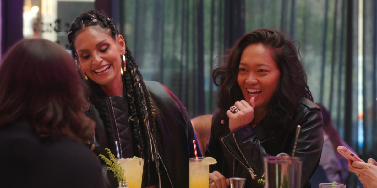 As of last week, we’re now up to two Real Housewives scenes set in a dyke bar. Racquel and Hot Mel head to The Bush in Brooklyn…with Erin and Abe, who are not necessarily the double date pair I would have picked, but it turns out Abe is actually kind of fun in this setting. Let’s walk through the entire scene, because whew there were a lot of Bravo firsts!!!