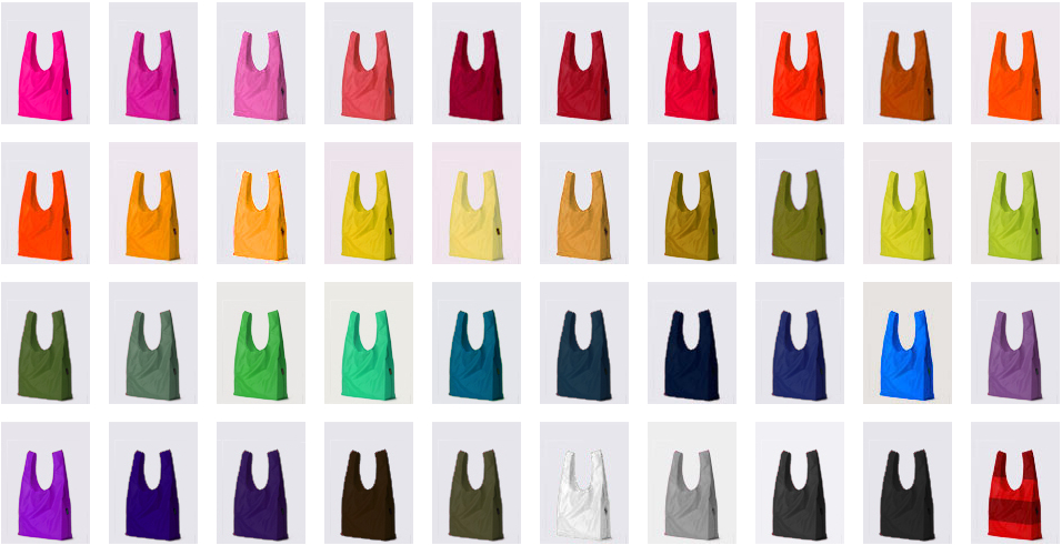 Since we’re starting with the simple stuff, let’s talk about what works for those of you who are craft-challenged. Namely baggu bags. These babies are made from ripstop nylon, carry up to 25 pounds, are machine washable and fold into tiny 5″ square pouches. I can see myself carrying one of these in my day-to-day bag in case of a shopping emergency.
